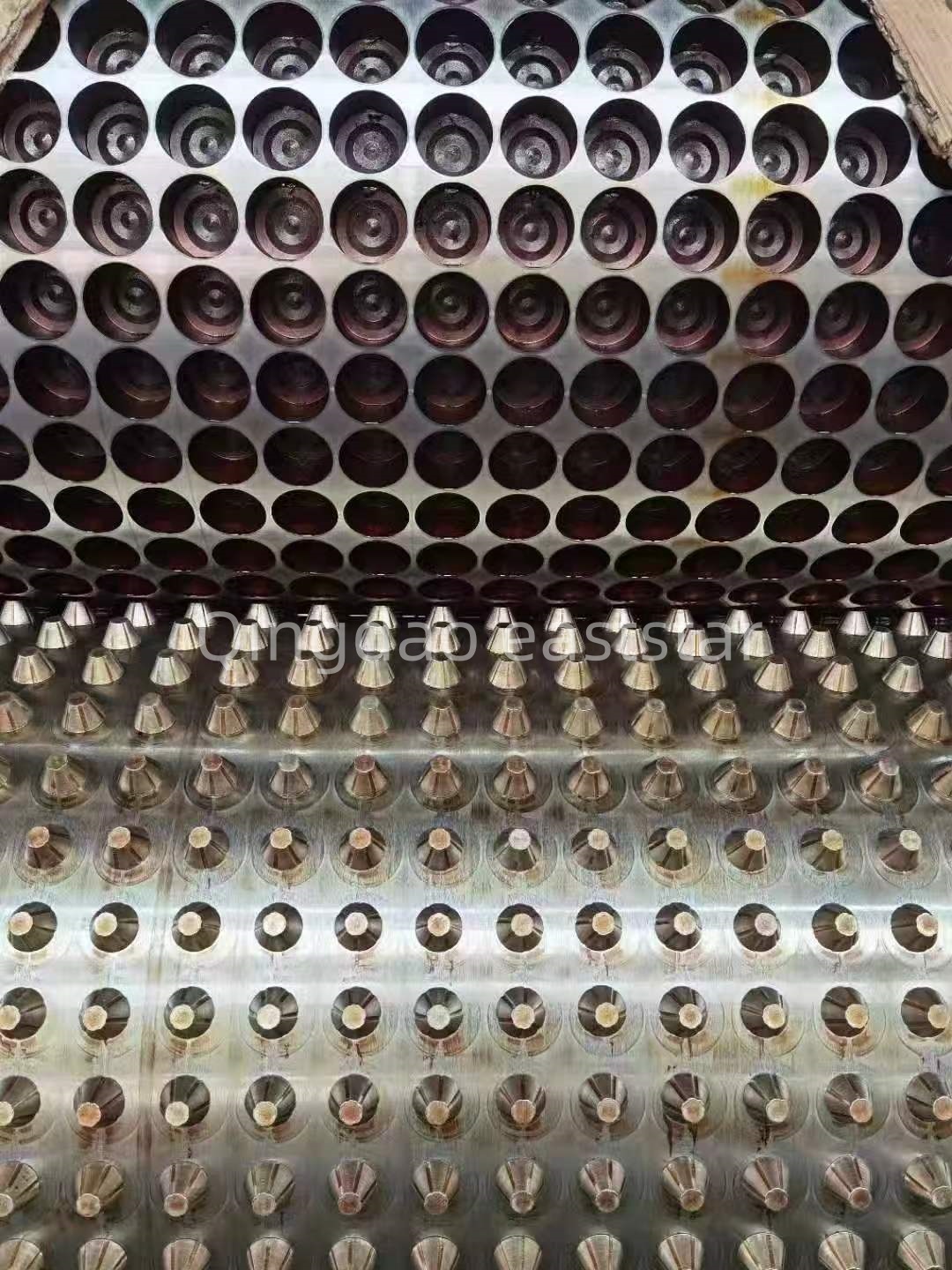 PE排水板生產(chǎn)線的模具系統(tǒng)采用衣架式流道設(shè)計,模具寬度1650mm,可生產(chǎn)0.8-1.2mm厚度的單層排水板。模具流道表面鍍鉻處理,拋光至鏡面效果,型腔粗糙度Ra0.1um,模唇粗糙度Ra0.05um。兩輥成型裝置配備Φ450×1700mm輥筒,輥面硬度HRC58-62,鍍鉻厚度0.08mm,通過特殊多流道設(shè)計確保溫度均勻。這些專業(yè)配置保障了