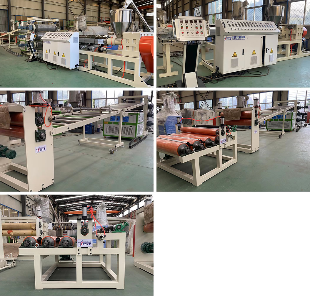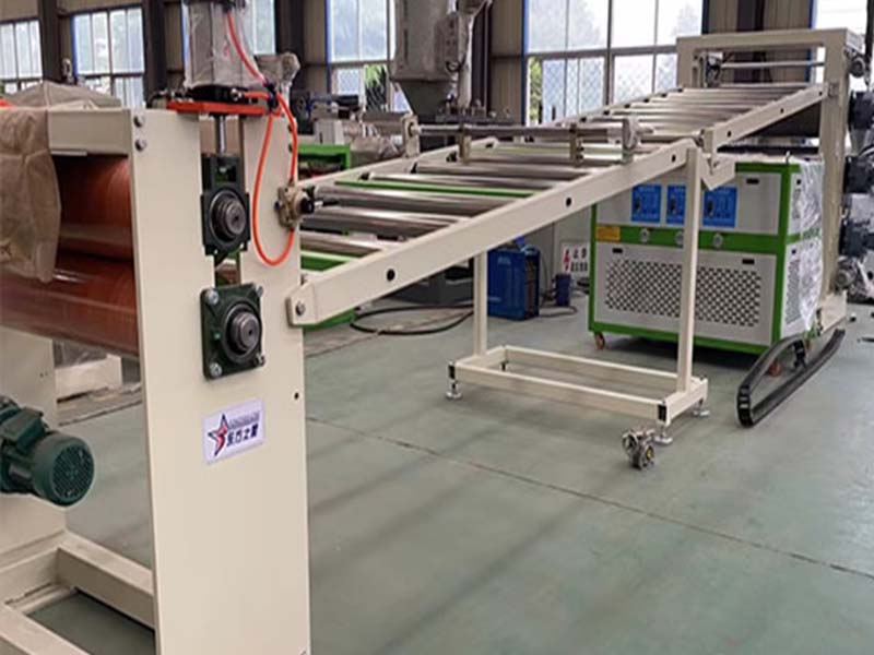 PE化學(xué)發(fā)泡片生產(chǎn)線:該設(shè)備采用120-30比1單螺桿擠出機(jī)、液壓自動(dòng)換網(wǎng)器、可調(diào)模具、立式三輥壓光機(jī)、三合一輥筒恒溫機(jī)、不銹鋼冷卻托架裝并裝靜電處理裝置及有寬幅可調(diào)的合金切邊刀、橡膠輥牽引機(jī)、雙工位氣漲軸收卷機(jī)。全線采用:日本歐姆龍智能溫控儀、施耐德低壓電器、國內(nèi)馳名品牌變頻調(diào)速器。
