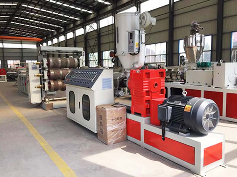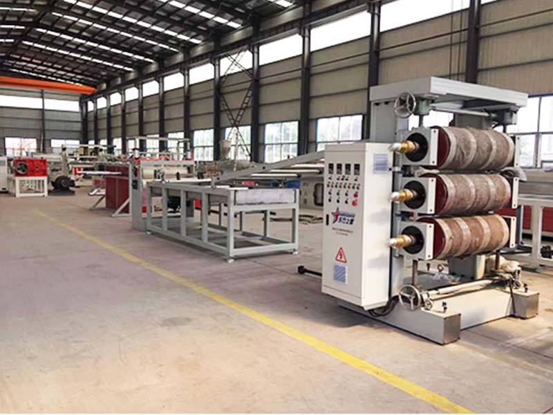 PVC透明軟門簾生產(chǎn)線:可生產(chǎn)寬度200-600毫米、厚度0.8-3毫米的PVC透明塑料片材。該設備采SJ90或SJ-120單螺桿擠出機、T型彈性??诳烧{(diào)模具、立式或斜45度三輥壓光機、三合一水溫機、不銹鋼冷卻托架裝并裝有寬幅可調(diào)切邊刀、橡膠輥牽引機、雙工位氣漲軸收卷機。所生產(chǎn)的片材表面光澤,通透無暇,柔軟,無裂縫、無異味、無氣泡、柔軟耐寒、耐磨、耐酸堿、耐腐蝕。